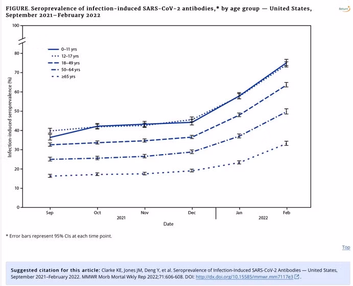 La verità è che il tracciamento dei contatti e le quarantene dell'esposizione sono per focolai altamente localizzati che coinvolgono persone realmente malate e agenti patogeni che non sono nell'aria, stagionali ed endemici. Per quanto ne so, non ci sono prove che nessuna delle due strategie sia stata fondamentale per mantenere i bambini nelle scuole durante questa pandemia. Dati di recente pubblicato dal CDC stima che oltre il 75% dei bambini e degli adolescenti americani fosse stato infettato da SARS-CoV-2 a dicembre 2021. (Marty Makary osserva giustamente che la cifra attuale è più vicina al 90%).