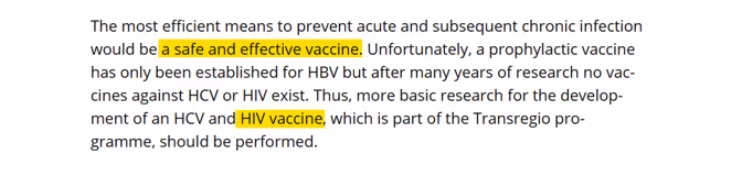 I virus cronici per i quali si cercava un vaccino erano l’epatite C e l’HIV. Una dichiarazione di intenti è disponibile in inglese Qui.. La centralità dello sviluppo di un vaccino contro l’HIV “sicuro ed efficace” è chiara. Sì, l’ormai famigerata formula “sicuro ed efficace” è contenuta nella dichiarazione di intenti (come si può vedere di seguito).
